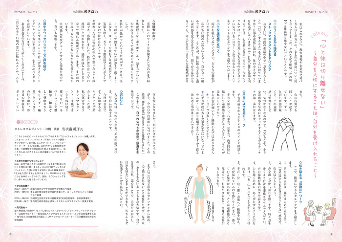 コラム「心と体は切り離せない」~自分を大切にすることは、自分を受け入れること~ (安次富 範子 氏) 日付: 2025年11月4日 コラム「心と体は切り離せない」 ~自分を大切にすることは、自分を受け入れること~